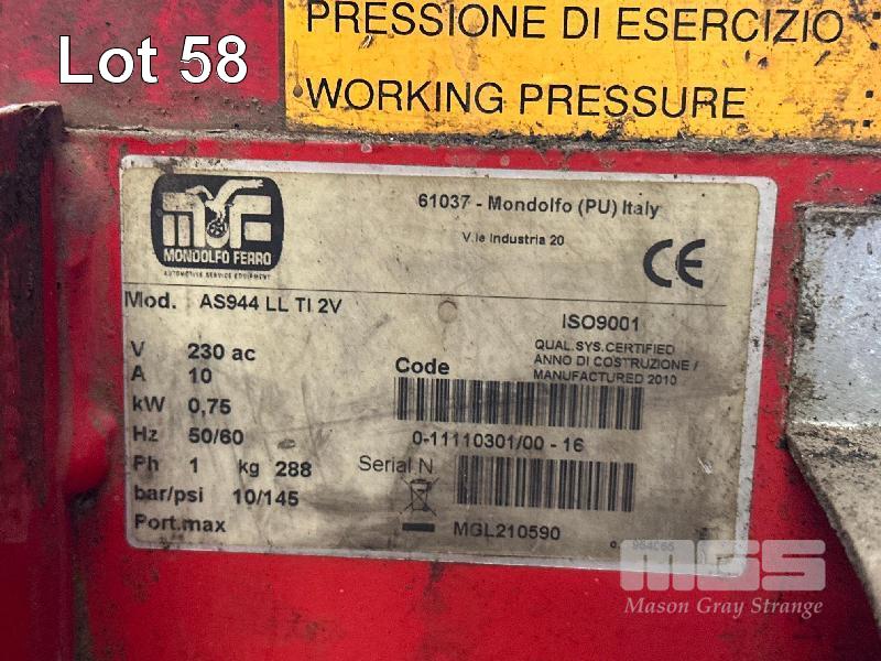 TYRE CHANGER, MONDOLFO-FERRO MOD: AQUILA AS 944 LLTI 2V TILT BACK HEAD RISE & FALL TYRE FITTING 240V