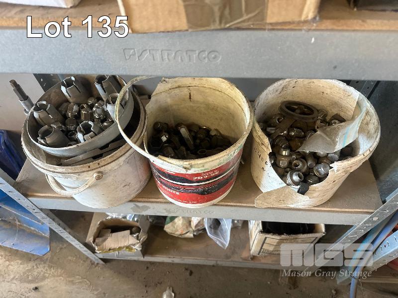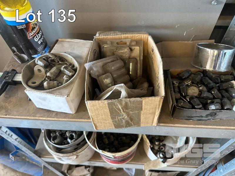 LARGE QUANTITY NEW & USED WHEEL NUTS & CAPS WITH RACK
