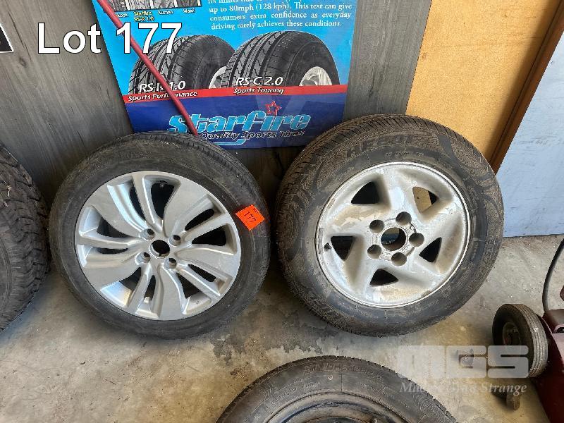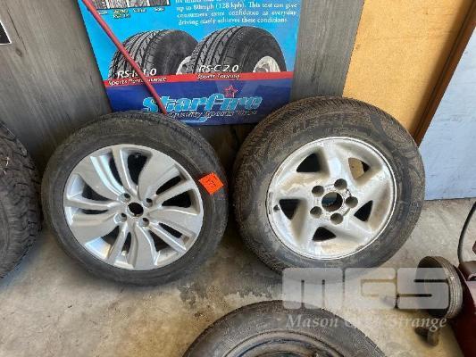 2 x ALLOY RIMS WITH NEW TYRES, HIFLY 215/60 R15 BRIDGESTONE 185/55 R16