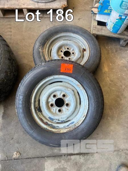 2 x EARLY 5 STUD HOLDEN RIMS, EH & HD & TYRES, 1 x TYRE NEW 175/14"