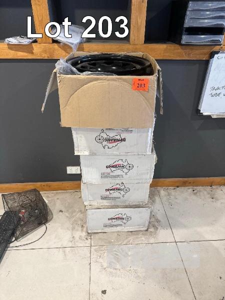 4 x NEW BLACK 6 STUD STEEL RIMS, 16" x 8"