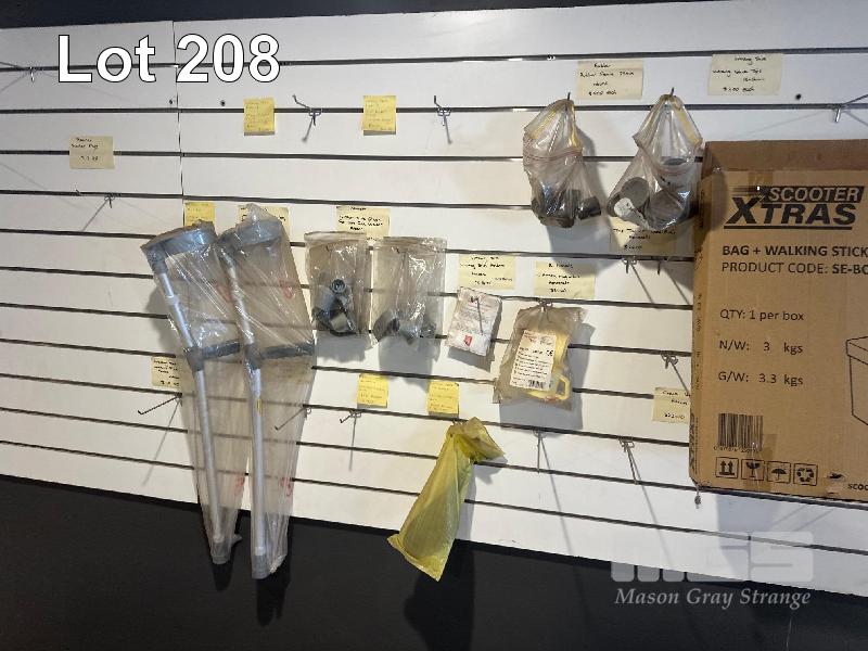 WHEEL CHAIN COVERS, CAMP SEATS, WALKER WHEELS, CRUTCHES, ETC CONTENTS WALL DISPLAY