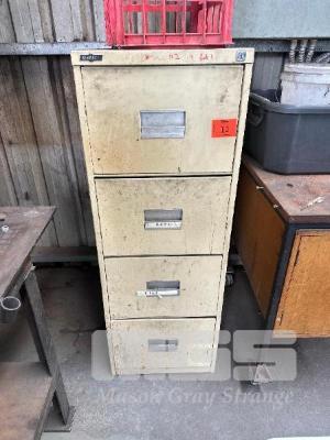 STEEL FILING CABINET, 4 DRAWER & MOBILE TIMBER/STEEL CUPBOARD
