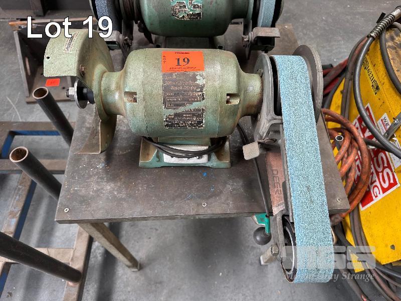 DOUBLE ENDED GRINDER, ABBOTT & ASHBY, 8" WITH BELT LINISHER 240V, & STAND NOT COMPLETE