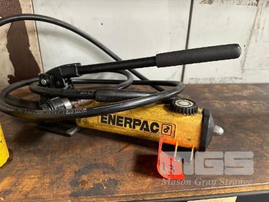 ENERPAC HAND OP HYDRALIC PUMP & 2 x RAMS