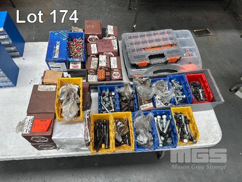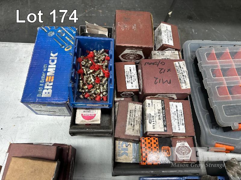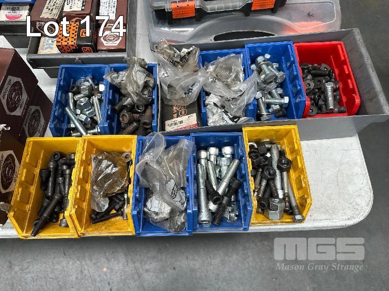 ASSORTED HARDWARE, NUTS, BOLTS , CAP HEADS, GREASE NIPPLES & 2 x GRAB KITS