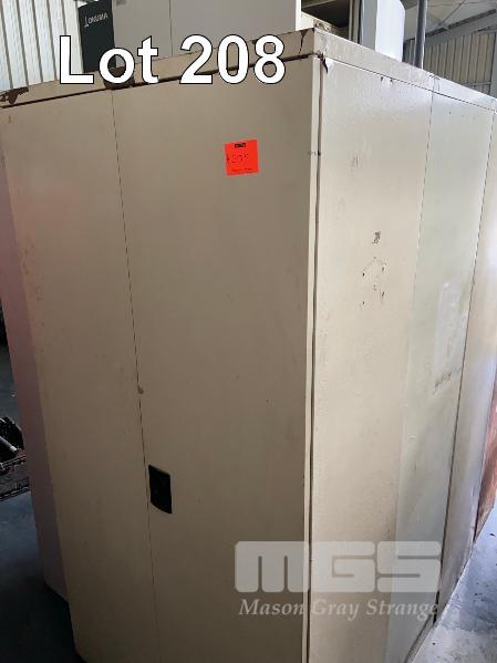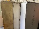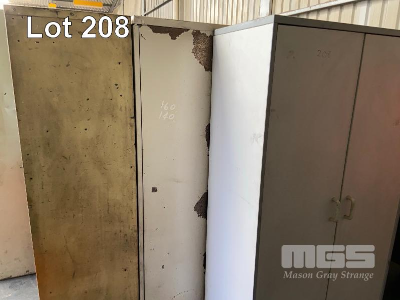 4 x STEEL STOCK CUPBOARDS, 2 DOOR & TIMBER 2 DOOR CUPBOARD