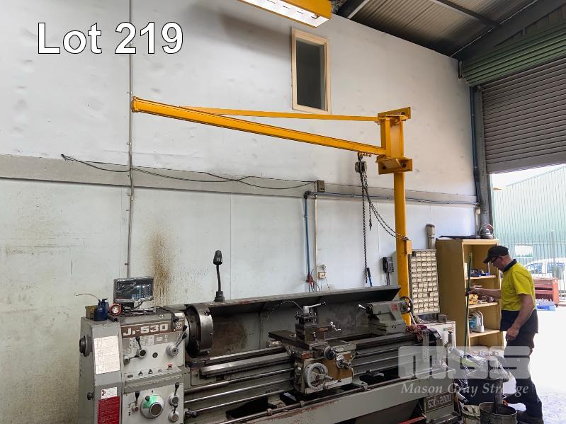 SWING ARM CRANE JIB, FREESTANDING 3.5m (H) x 3m ARM DISMANTELED.