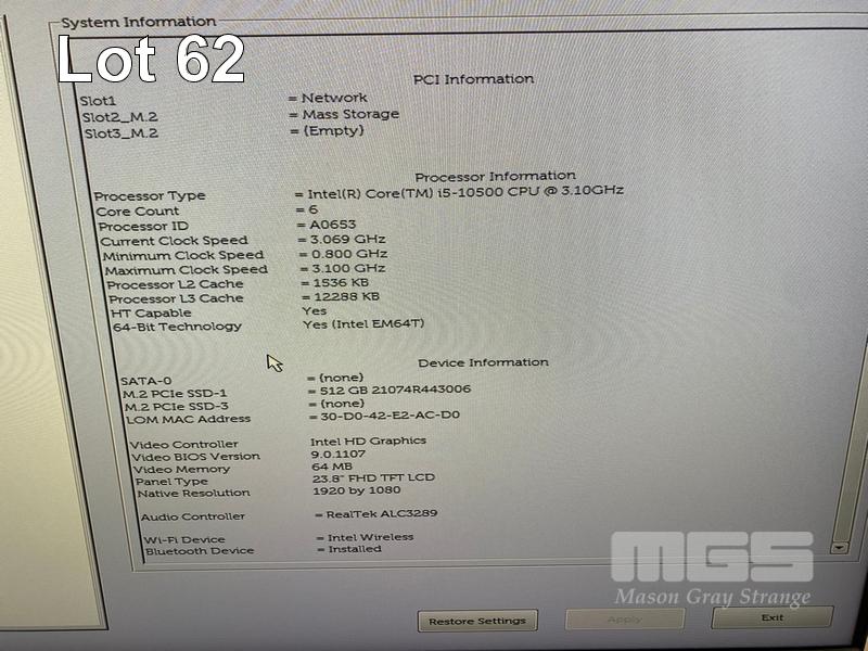 ALL-IN-ONE PC, DELL OPTIPLEX 7480, CORE i5 10500 (10TH GEN) @ 3.1GHz, 8GB DDR4 RAM, 512GB NVMe M.2 SSD, INBUILT 23.8" FHD WIDESCREEN (1920x1080), INTEL HD VIDEO, WEBCAM, 5 x USB, 1 x USB-C, Wi-Fi, BLUETOOTH, WINDOWS 11 HOME INSTALLED, KEYBOARD & MOUSE S/N:HBZFTD3