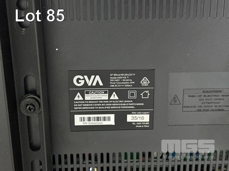 GVA 32" HD LED TV, MODEL G32TV15 WITH REMOTE S/N:1635A22243
