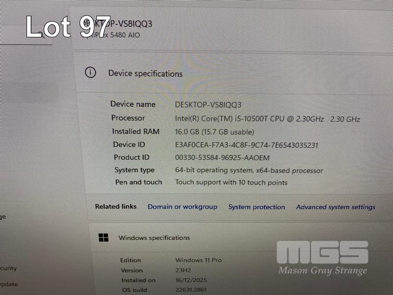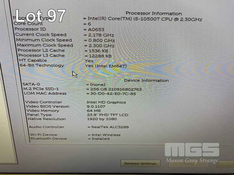 ALL-IN-ONE PC, DELL OPTIPLEX 5480, CORE i5 10500T (10TH GEN) @ 2.3GHz, 16GB DDR4 RAM, 256GB NVMe M.2 SSD, INBUILT 23.8" FHD TOUCHSCREEN (1920x1080), INTEL HD VIDEO, WEBCAM, 5 x USB, 1 x USB-C, Wi-Fi, BLUETOOTH, WINDOWS 11 PRO INSTALLED, KEYBOARD & MOUSE S/N:8PK0RD3