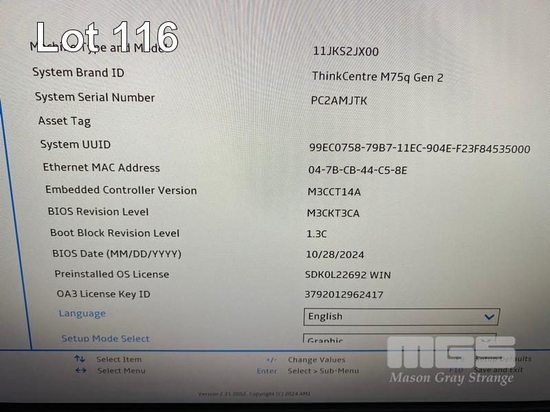 DESKTOP PC, LENOVO THINKCENTRE M75q GEN 2 TINY, TYPE 11JK, AMD RYZEN 5 4600GE @ 3.3GHz, 16GB DDR4 RAM, 512GB NVMe M.2 SSD, Wi-Fi, BLUETOOTH, WINDOWS 11 PRO EDUCATION INSTALLED & POWER SUPPLY (NO KEYBOARD, NO MOUSE) S/N:PC2AMJTK