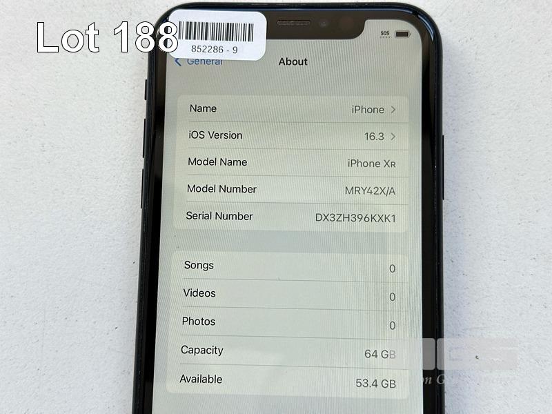 APPLE iPHONE XR, 64GB, BLACK, MODEL MRY42X/A, A2105, BATTERY HEALTH 89% (NO CABLE, NO CHARGER) S/N:DZ3ZH396KXK1