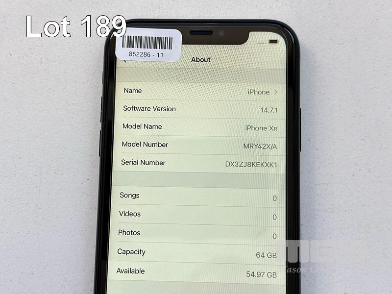 APPLE iPHONE XR, 64GB, BLACK, MODEL MRY42X/A, A2105, BATTERY HEALTH 89% (NO CABLE, NO CHARGER) S/N:DX3ZJ8KEKXK1
