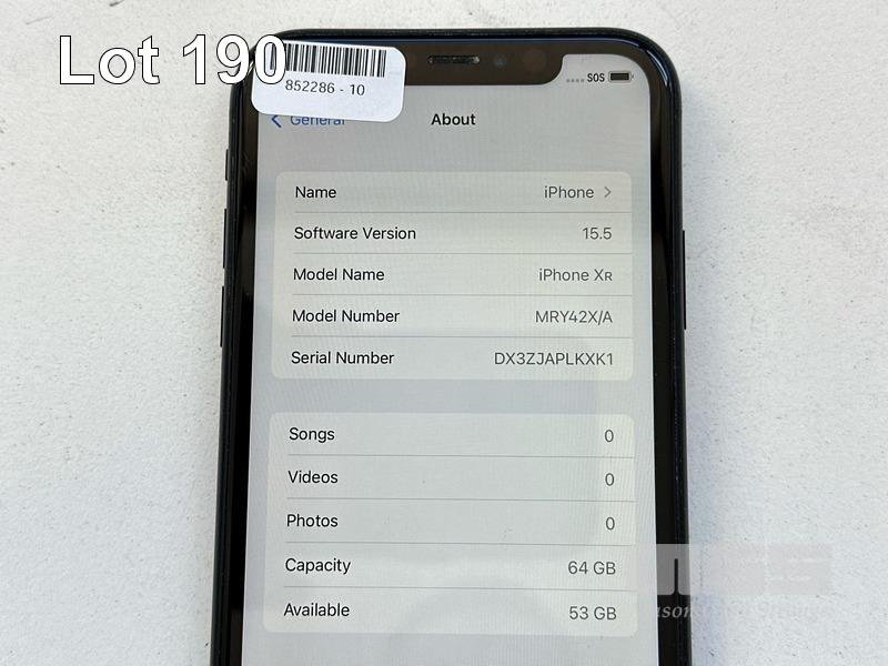 APPLE iPHONE XR, 64GB, BLACK, MODEL MRY42X/A, A2105, BATTERY HEALTH 88% (NO CABLE, NO CHARGER) S/N:DX3ZJAPLKXK1