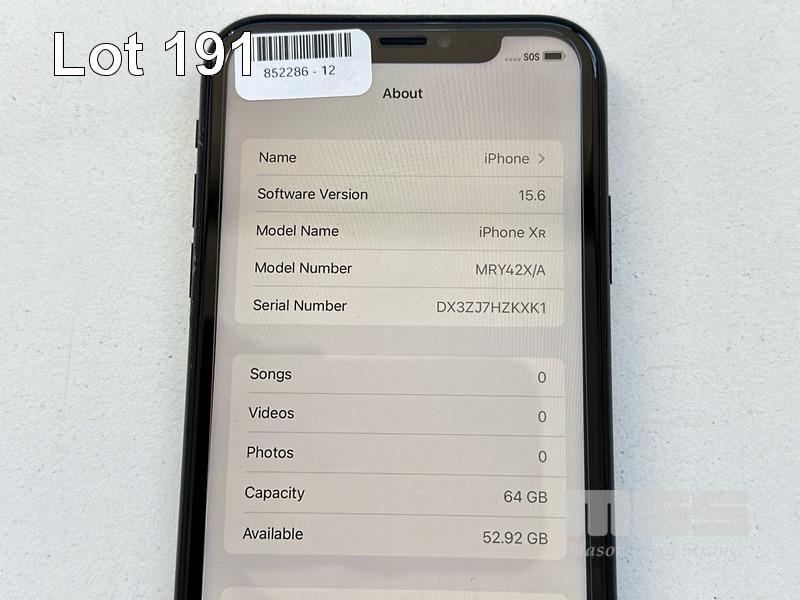 APPLE iPHONE XR, 64GB, BLACK, MODEL MRY42X/A, A2105, BATTERY HEALTH 88% (NO CABLE, NO CHARGER) S/N:DX3ZJ7HZKXK1