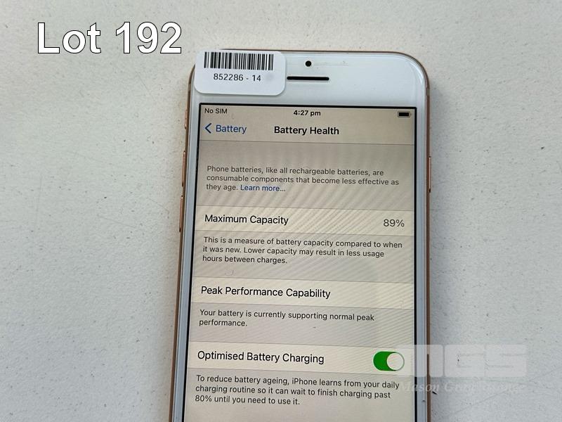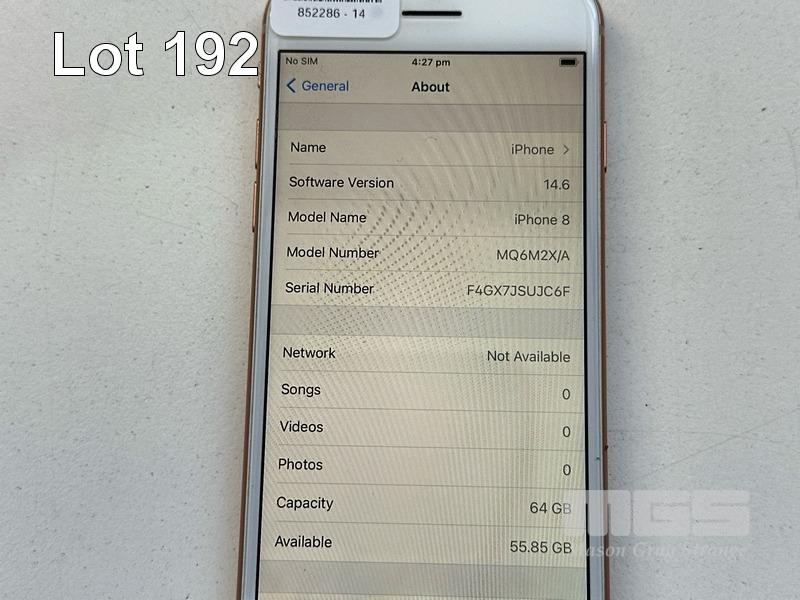 APPLE iPHONE 8, 64GB, ROSE GOLD, MODEL MQ6M2X/A, A1863, BATTERY HEALTH 89% (NO CABLE, NO CHARGER) S/N:F4GX7JSUJC6F