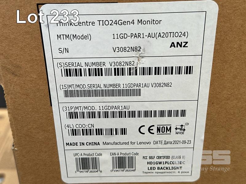 MONITOR, LENOVO THINKCENTRE TIO24Gen4 23.8" LED-BL LCD WIDESCREEN, MODEL 11GD (SEALED IN BOX) S/N:V3082N82