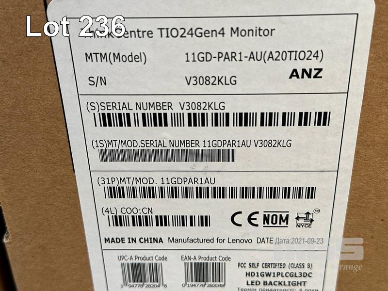 MONITOR, LENOVO THINKCENTRE TIO24Gen4 23.8" LED-BL LCD WIDESCREEN, MODEL 11GD (SEALED IN BOX)