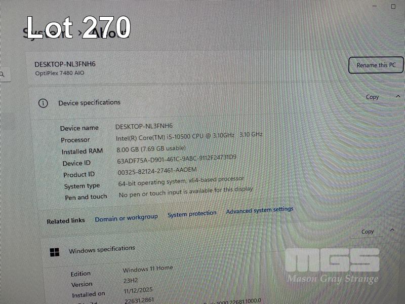 ALL-IN-ONE PC, DELL OPTIPLEX 7480, CORE i5 10500 (10TH GEN) @ 3.1GHz, 8GB DDR4 RAM, 512GB NVMe M.2 SSD, INBUILT 23.8" FHD WIDESCREEN (1920x1080), INTEL HD VIDEO, WEBCAM, 5 x USB, 1 x USB-C, Wi-Fi, BLUETOOTH, WINDOWS 11 HOME INSTALLED, KEYBOARD & MOUSE S/N:G9ZFTD3