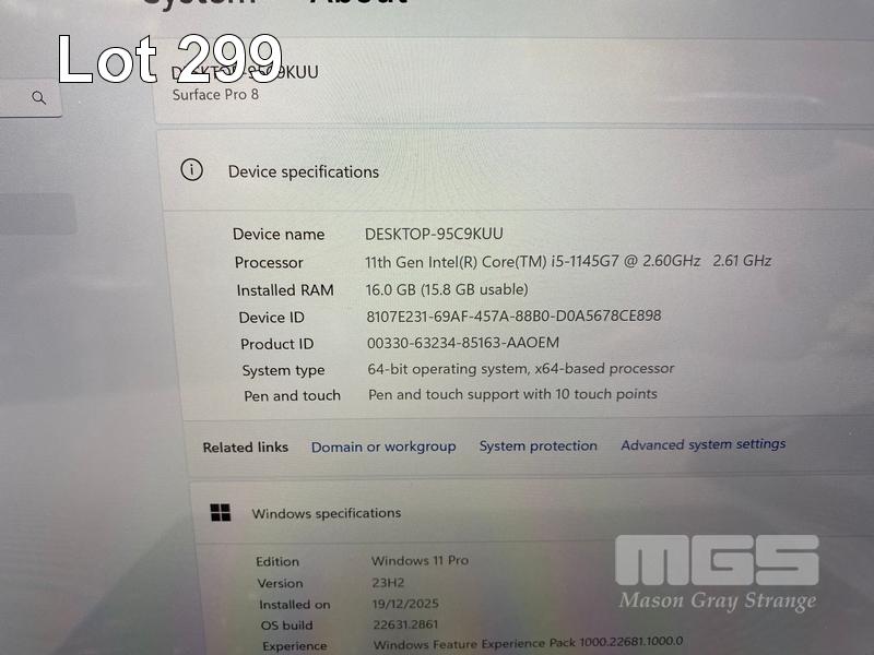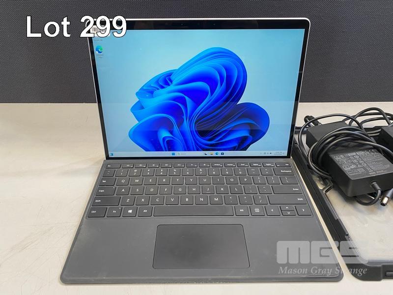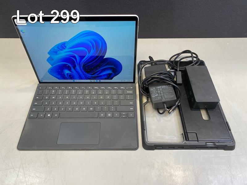 TABLET PC, MICROSOFT SURFACE PRO 8, MODEL 1982, CORE i5 1145G7 (11TH GEN) @ 2.6GHz, 16GB DDR4 RAM, 256GB NVMe M.2 SSD, 13" TOUCHSCREEN (2880x1920), INTEL IRIS Xe GRAPHICS, Wi-Fi, CELLULAR, BLUETOOTH, WINDOWS 11 PRO INSTALLED, KEYBOARD TYPE COVER, CASE, DOCKING STATION & POWER SUPPLY (NO TABLET POWER SUPPLY) S/N:0F00NWA214501J