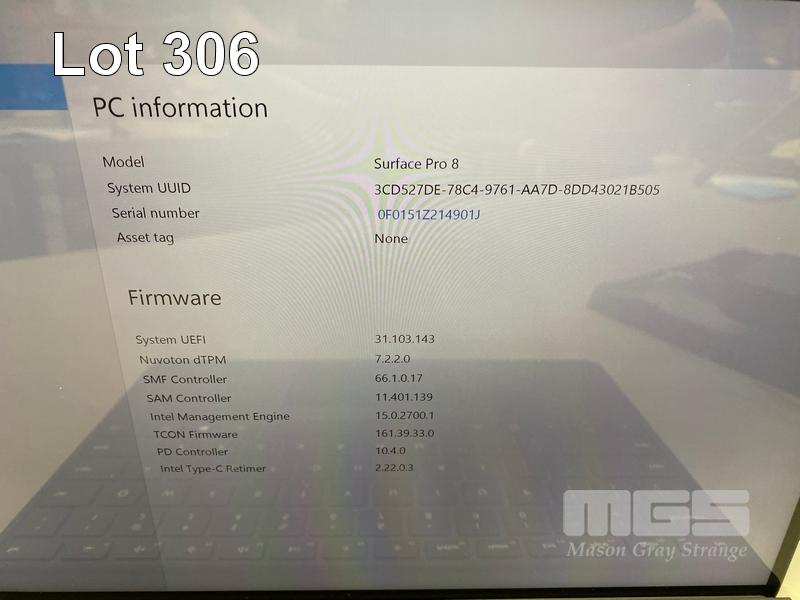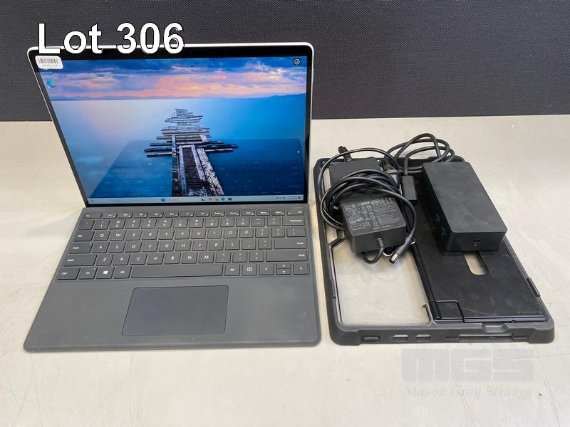 TABLET PC, MICROSOFT SURFACE PRO 8, MODEL 1982, CORE i5 1145G7 (11TH GEN) @ 2.6GHz, 16GB DDR4 RAM, 256GB NVMe M.2 SSD, 13" TOUCHSCREEN (2880x1920), INTEL IRIS Xe GRAPHICS, Wi-Fi, CELLULAR, BLUETOOTH, WINDOWS 11 PRO INSTALLED, KEYBOARD TYPE COVER, CASE, DOCKING STATION & POWER SUPPLY (NO TABLET POWER SUPPLY) S/N:0F0151Z214901J