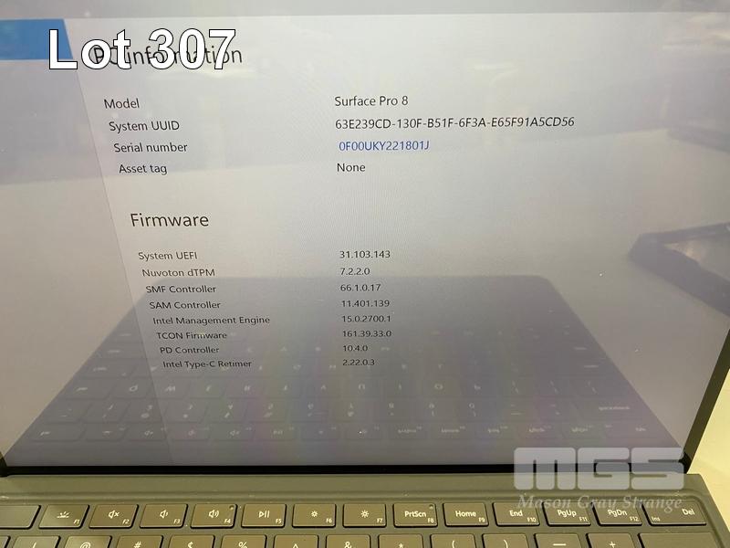 TABLET PC, MICROSOFT SURFACE PRO 8, MODEL 1982, CORE i5 1145G7 (11TH GEN) @ 2.6GHz, 16GB DDR4 RAM, 256GB NVMe M.2 SSD, 13" TOUCHSCREEN (2880x1920), INTEL IRIS Xe GRAPHICS, Wi-Fi, CELLULAR, BLUETOOTH, WINDOWS 11 PRO INSTALLED, KEYBOARD TYPE COVER, CASE, DOCKING STATION & POWER SUPPLY (NO TABLET POWER SUPPLY) S/N:0F00UKY221801J
