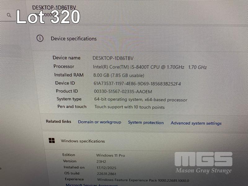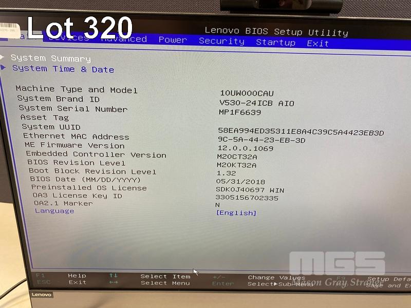 ALL-IN-ONE PC, LENOVO V530-24ICB, TYPE 10UW, CORE i5 8400T (8TH GEN) @ 1.7GHz, 8GB DDR4 RAM, 256GB NVMe M.2 SSD, DVD-RW, INBUILT 23.8" FHD TOUCHSCREEN (1920x1080), INTEL UHD GRAPHICS, WEBCAM, Wi-Fi, BLUETOOTH, WINDOWS 11 PRO INSTALLED, KEYBOARD & MOUSE (NOTE: NO STAND) S/N:MP1F6639