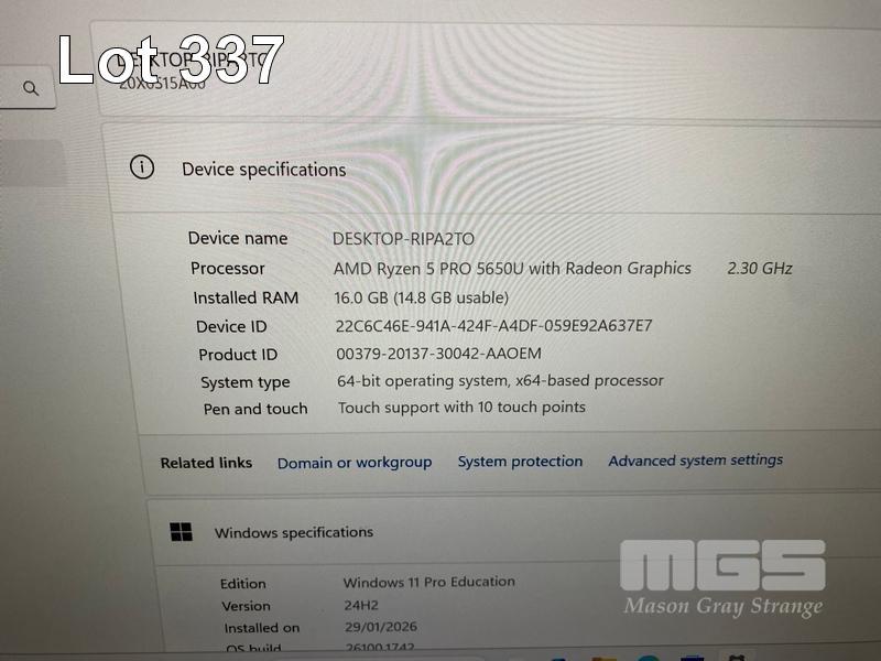 LAPTOP, LENOVO THINKPAD L14 Gen2, TYPE 20X6, AMD RYZEN 5 PRO 5650U @ 2.3GHz, 16GB DDR4 RAM, 256GB NVMe M.2 SSD, 14" TOUCHSCREEN (1920x1080), Wi-Fi, BLUETOOTH, WINDOWS 11 PRO EDUCATION INSTALLED (NO USB-C POWER SUPPLY) S/N:PF3FEE20