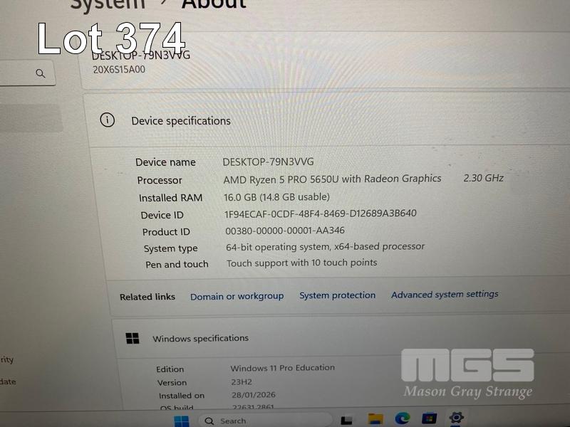 LAPTOP, LENOVO THINKPAD L14 Gen2, TYPE 20X6, AMD RYZEN 5 PRO 5650U @ 2.3GHz, 16GB DDR4 RAM, 256GB NVMe M.2 SSD, 14" TOUCHSCREEN (1920x1080), Wi-Fi, BLUETOOTH, WINDOWS 11 PRO EDUCATION INSTALLED (NO USB-C POWER SUPPLY) (NOTE: DAMAGE TO CASING, MARKS ON SCREEN) S/N:PF3GR0EY