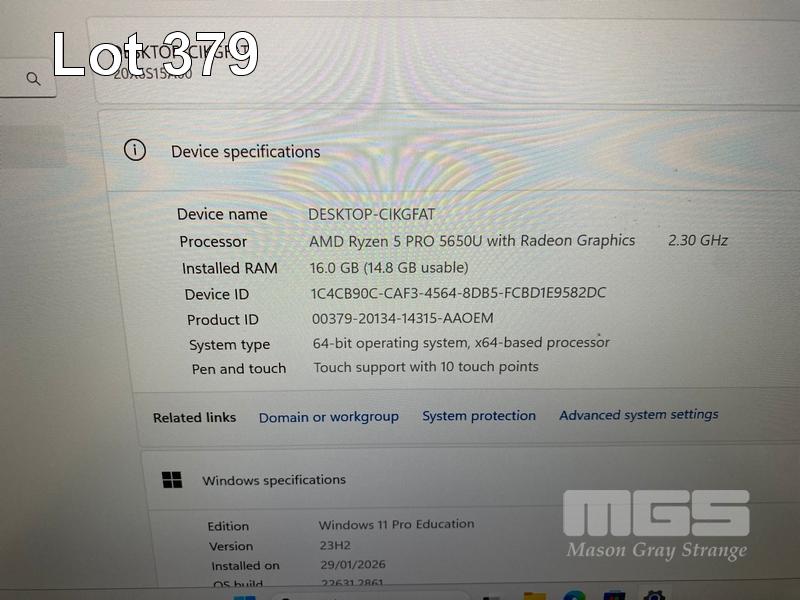 LAPTOP, LENOVO THINKPAD L14 Gen2, TYPE 20X6, AMD RYZEN 5 PRO 5650U @ 2.3GHz, 16GB DDR4 RAM, 256GB NVMe M.2 SSD, 14" TOUCHSCREEN (1920x1080), Wi-Fi, BLUETOOTH, WINDOWS 11 PRO EDUCATION INSTALLED (NO USB-C POWER SUPPLY) (NOTE: CRACK LINE ON CASING, MARKS ON SCREEN) S/N:PF3KCFED