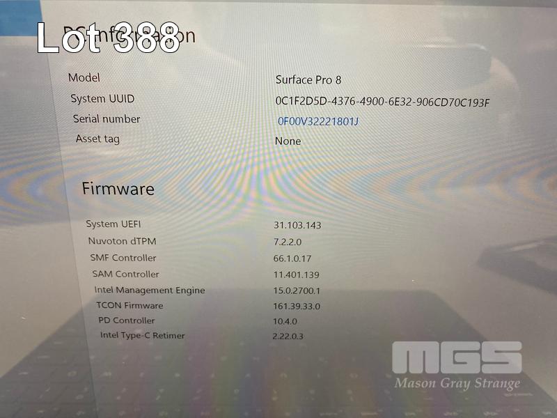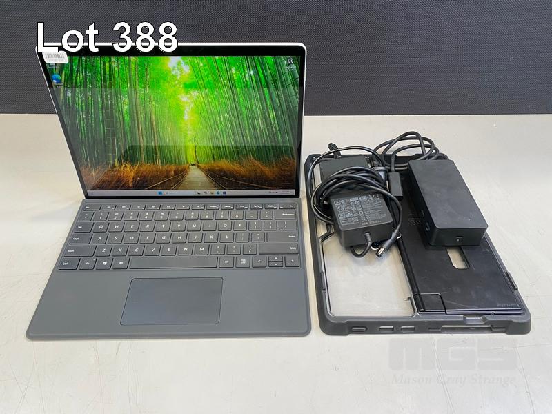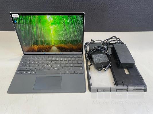 TABLET PC, MICROSOFT SURFACE PRO 8, MODEL 1982, CORE i5 1145G7 (11TH GEN) @ 2.6GHz, 16GB DDR4 RAM, 256GB NVMe M.2 SSD, 13" TOUCHSCREEN (2880x1920), INTEL IRIS Xe GRAPHICS, Wi-Fi, CELLULAR, BLUETOOTH, WINDOWS 11 PRO INSTALLED, KEYBOARD TYPE COVER, CASE, DOCKING STATION & POWER SUPPLY (NO TABLET POWER SUPPLY) S/N:0F00V32221801J