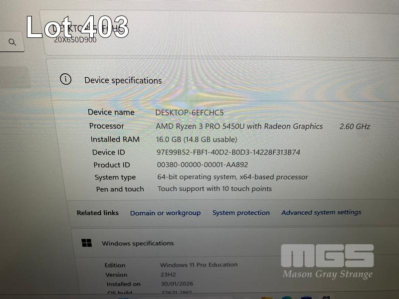 LAPTOP, LENOVO THINKPAD L14 Gen2, TYPE 20X6, AMD RYZEN 3 PRO 5450U @ 2.6GHz, 16GB DDR4 RAM, 256GB NVMe M.2 SSD, 14" TOUCHSCREEN (1920x1080), Wi-Fi, BLUETOOTH, WINDOWS 11 PRO EDUCATION INSTALLED (NO USB-C POWER SUPPLY) S/N:PF3KCSVF