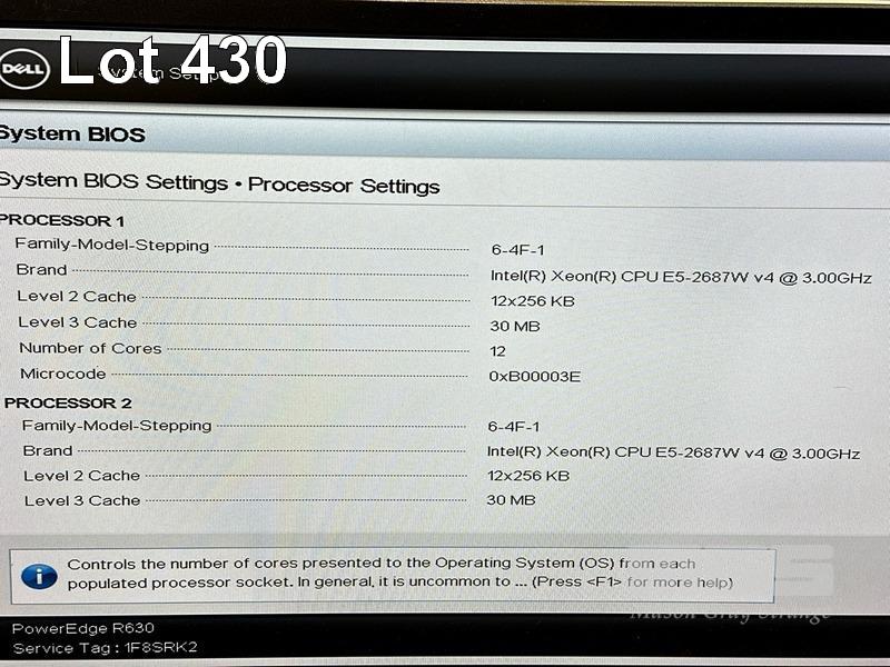 RACKMOUNT SERVER, DELL EMC POWEREDGE R630, 1U, 2 x XEON E5-2687W v4 @ 3GHz, 512GB ECC DDR4 RAM (16x32GB), 6 x 300GB SAS HDD, DVD-RW, 2-PORT QLOGIC QLE2562 8Gb FC ADAPTER, 2 x 1100W PSU WITH RAILS (NO CABLES) S/N:1F8SRK2