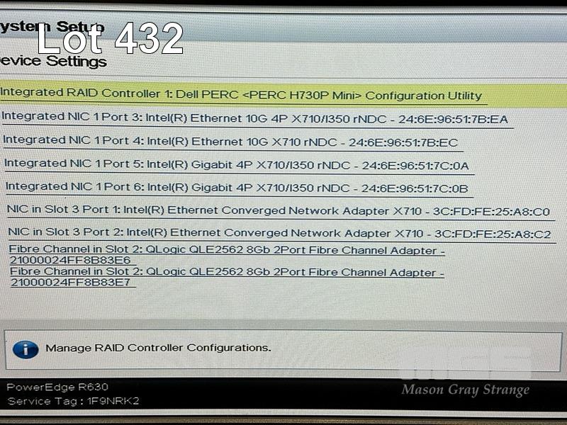 RACKMOUNT SERVER, DELL EMC POWEREDGE R630, 1U, 2 x XEON E5-2687W v4 @ 3GHz, 512GB ECC DDR4 RAM (16x32GB), 6 x 300GB SAS HDD, DVD-RW, 2-PORT QLOGIC QLE2562 8Gb FC ADAPTER, 2 x 1100W PSU WITH RAILS (NO CABLES) S/N:1F9NRK2