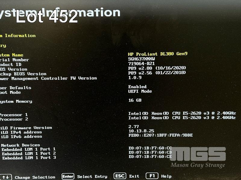 RACKMOUNT SERVER, HP PROLIANT DL380 Gen9, 2U, 2 x XEON E5-2620 v3 @ 2.4GHz, 16GB ECC DDR4 RAM, 14 x 600GB SAS HDD, 2 x 146GB SAS HDD, 2 x 500W PSU WITH RAILS (NO CABLES) (NOTE: MESSAGE "SMART STORAGE BATTERY 1 FAILURE") S/N:SGH637XNXW