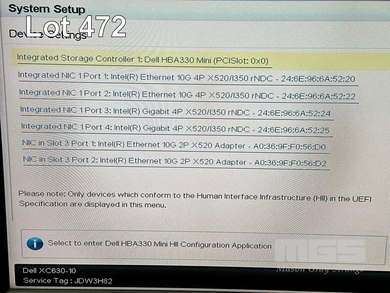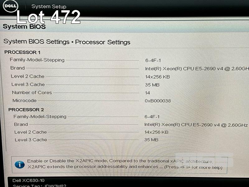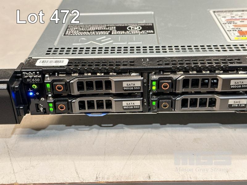 RACKMOUNT SERVER, DELL XC630 HYPER-CONVERGED APPLIANCE, 1U, 2 x XEON E5-2690 v4 @ 2.6GHz, 320GB ECC DDR4 RAM (10x32GB), 3 x 960GB SSD, 7 x 2TB SAS HDD (12Gbps), 1 x 64GB SSD (06GMMX) INTERNAL, INTEL X520 DP 10Gb DA/SFP+ ADAPTER, 2 x 750W PSU (NO CABLES) (NOTE: MISSING RIGHT RACK EAR) S/N:JDW3H82