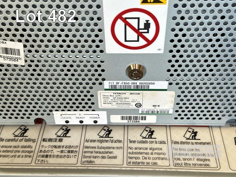 RACKMOUNT STORAGE ARRAY, HITACHI DRIVE BOX (LFF), MODEL DF-F850-DBX, 4U, 48 x 3TB SAS HDD, 4 x IOBS6 I/O CARD, 4 x PSU (F850PUDBX) (NO CABLES)