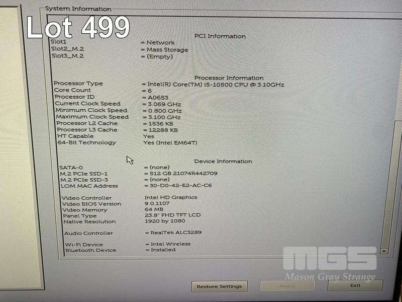 ALL-IN-ONE PC, DELL OPTIPLEX 7480, CORE i5 10500 (10TH GEN) @ 3.1GHz, 8GB DDR4 RAM, 512GB NVMe M.2 SSD, INBUILT 23.8" FHD WIDESCREEN (1920x1080), INTEL HD VIDEO, WEBCAM, 5 x USB, 1 x USB-C, Wi-Fi, BLUETOOTH, WINDOWS 11 HOME INSTALLED, KEYBOARD & MOUSE S/N:68ZFTD3