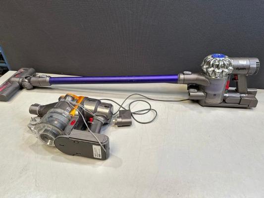 DYSON DC59 CORDLESS STICK VACUUM, WALL MOUNT & CHARGER WITH SPARE DYSON VACUUM & CHARGER (NO ACCESSORIES)