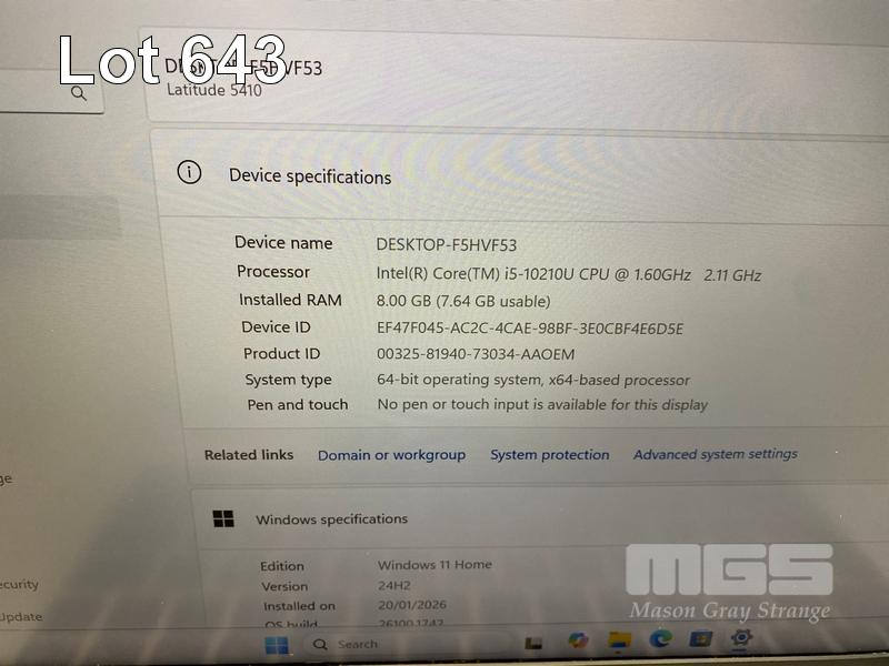LAPTOP, DELL LATITUDE 5410, CORE i5 10210U (10TH GEN) @ 1.6GHz, 8GB DDR4 RAM, 512GB NVMe M.2 SSD, 14" WIDESCREEN (1920x1080), INTEL UHD GRAPHICS, Wi-Fi, BLUETOOTH, WINDOWS 11 HOME INSTALLED & POWER SUPPLY (NOTE: DAMAGE ON BOTTOM OF LAPTOP CASING, CASING PEELING) S/N:FQS4Q73