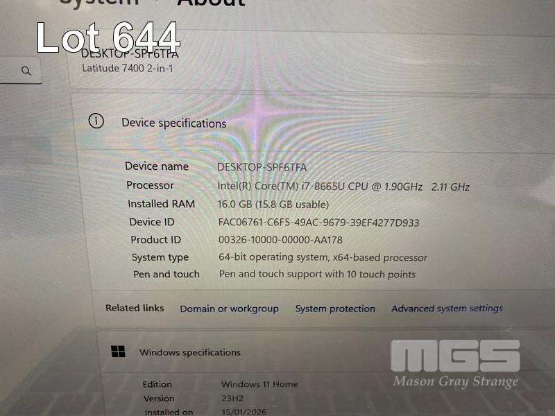 LAPTOP, DELL LATITUDE 7400 2-IN-1, CORE i7 8665U (8TH GEN) @ 1.9GHz, 16GB DDR3 RAM, 512GB NVMe M.2 SSD, 14" TOUCHSCREEN (1920x1080), INTEL UHD GRAPHICS 620, Wi-Fi, BLUETOOTH, WINDOWS 11 HOME INSTALLED (NO USB-C POWER SUPPLY) (NOTE: DAMAGE TO CASING UNDERNEATH) S/N:C0MHM33