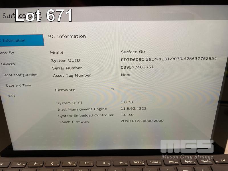 TABLET PC, MICROSOFT SURFACE GO, MODEL 1824, PENTIUM GOLD 4415Y @ 1.6GHz, 8GB DDR3 RAM, 128GB NVMe M.2 SSD, 10" TOUCHSCREEN (1800x1200), INTEL HD GRAPHICS 615, Wi-Fi, BLUETOOTH, WINDOWS 10 PRO INSTALLED, KEYBOARD TYPE COVER & POWER SUPPLY S/N:039577482951