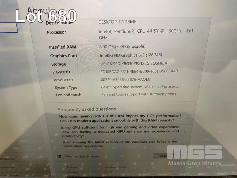 TABLET PC, MICROSOFT SURFACE GO, MODEL 1824, PENTIUM GOLD 4415Y @ 1.6GHz, 8GB DDR3 RAM, 128GB NVMe M.2 SSD, 10" TOUCHSCREEN (1800x1200), INTEL HD GRAPHICS 615, Wi-Fi, BLUETOOTH, WINDOWS 10 PRO INSTALLED, KEYBOARD TYPE COVER & POWER SUPPLY S/N:025078684451