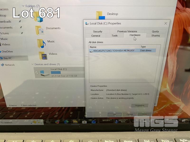 TABLET PC, MICROSOFT SURFACE GO, MODEL 1824, PENTIUM GOLD 4415Y @ 1.6GHz, 8GB DDR3 RAM, 128GB NVMe M.2 SSD, 10" TOUCHSCREEN (1800x1200), INTEL HD GRAPHICS 615, Wi-Fi, BLUETOOTH, WINDOWS 10 PRO INSTALLED, KEYBOARD TYPE COVER & POWER SUPPLY S/N:023738583651