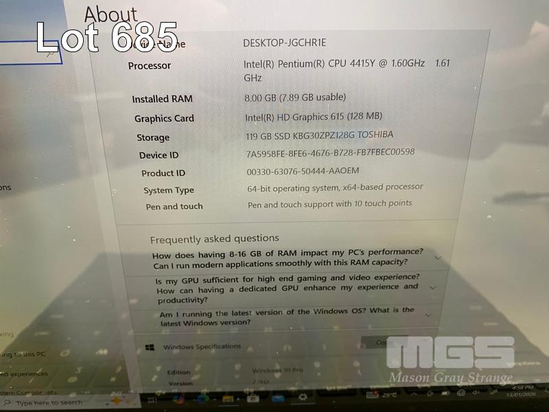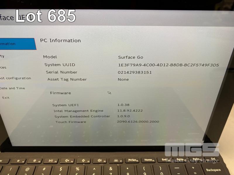 TABLET PC, MICROSOFT SURFACE GO, MODEL 1824, PENTIUM GOLD 4415Y @ 1.6GHz, 8GB DDR3 RAM, 128GB NVMe M.2 SSD, 10" TOUCHSCREEN (1800x1200), INTEL HD GRAPHICS 615, Wi-Fi, BLUETOOTH, WINDOWS 10 PRO INSTALLED, KEYBOARD TYPE COVER & POWER SUPPLY S/N:021429383151