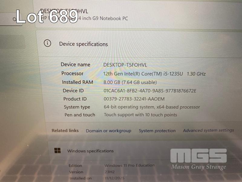 LAPTOP, HP PROBOOK 440 G9, CORE i5 1235U (12TH GEN) @ 1.3GHz, 8GB DDR4 RAM, 256GB NVMe M.2 SSD, 14" TOUCHSCREEN (1920x1080), INTEL UHD GRAPHICS, Wi-Fi, BLUETOOTH, WINDOWS 11 PRO EDUCATION INSTALLED & POWER SUPPLY (NOTE: DAMAGE TO CASING, MARKS ON SCREEN) S/N:5CD2418B3T