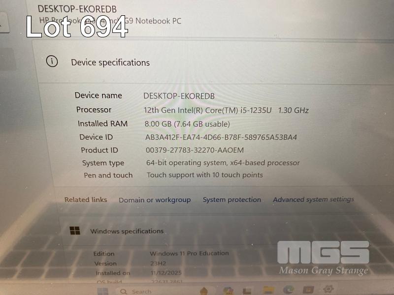 LAPTOP, HP PROBOOK 440 G9, CORE i5 1235U (12TH GEN) @ 1.3GHz, 8GB DDR4 RAM, 256GB NVMe M.2 SSD, 14" TOUCHSCREEN (1920x1080), INTEL UHD GRAPHICS, Wi-Fi, BLUETOOTH, WINDOWS 11 PRO EDUCATION INSTALLED & POWER SUPPLY (NOTE: DAMAGE TO CASING, MARKS ON SCREEN) S/N:5CD2418B5C