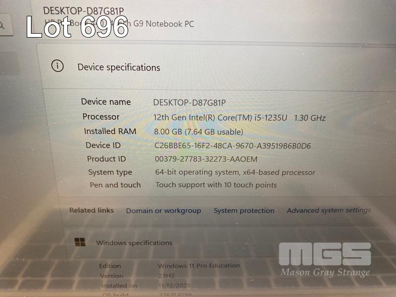 LAPTOP, HP PROBOOK 440 G9, CORE i5 1235U (12TH GEN) @ 1.3GHz, 8GB DDR4 RAM, 256GB NVMe M.2 SSD, 14" TOUCHSCREEN (1920x1080), INTEL UHD GRAPHICS, Wi-Fi, BLUETOOTH, WINDOWS 11 PRO EDUCATION INSTALLED & POWER SUPPLY (NOTE: SPOTS ON SCREEN, DAMAGE TO CASING, MARKS ON SCREEN) S/N:5CD2418B31