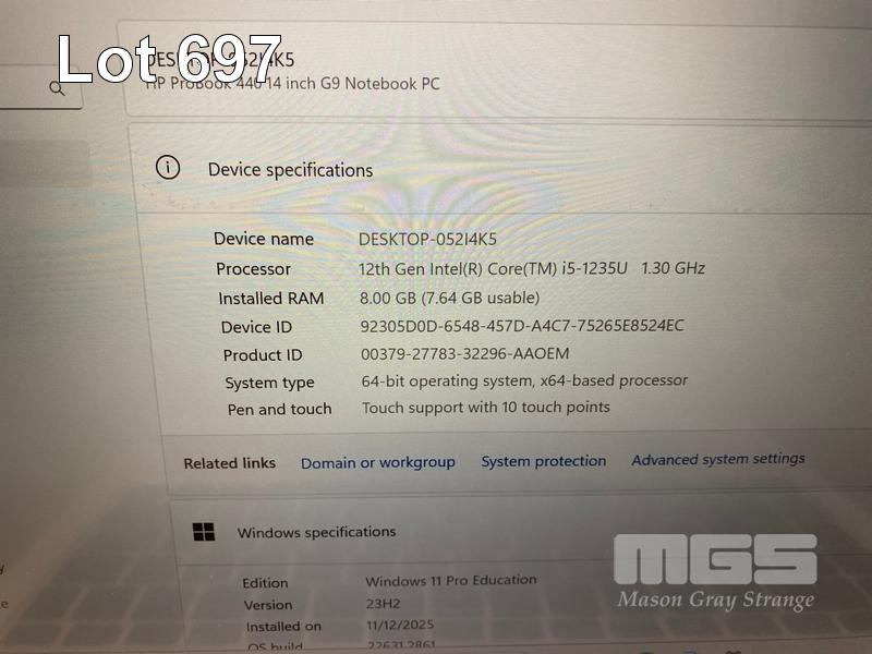 LAPTOP, HP PROBOOK 440 G9, CORE i5 1235U (12TH GEN) @ 1.3GHz, 8GB DDR4 RAM, 256GB NVMe M.2 SSD, 14" TOUCHSCREEN (1920x1080), INTEL UHD GRAPHICS, Wi-Fi, BLUETOOTH, WINDOWS 11 PRO EDUCATION INSTALLED & POWER SUPPLY (NOTE: SPOTS ON SCREEN, DAMAGE TO CASING, MARKS ON SCREEN) S/N:5CD2418B3K